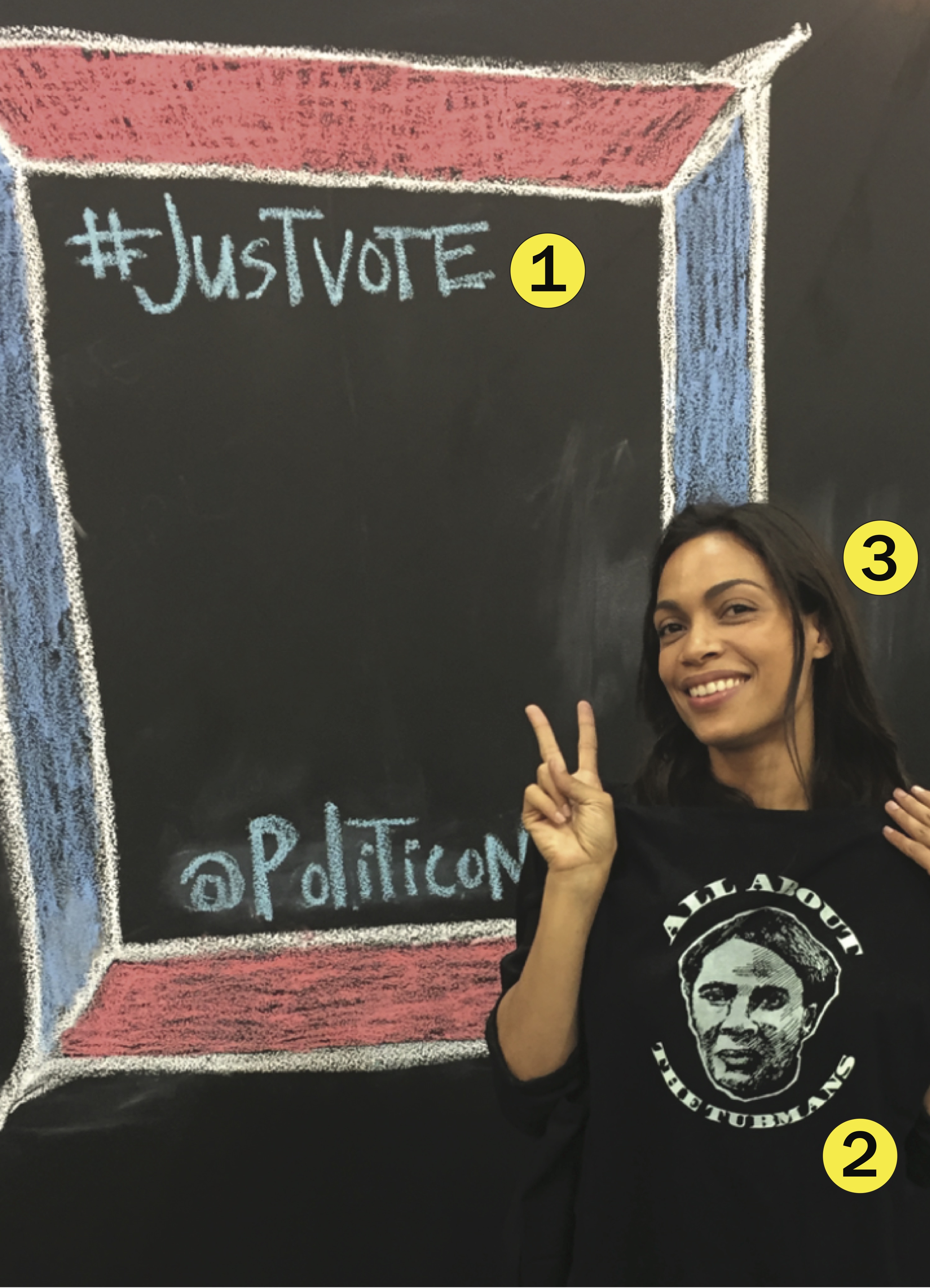 2) We also see Rosario holding an “All About The Tubmans” t-shirt, designed by Big Bowl of Ideas, and screen printed live at POLITICON by our friends Hit + Run, the originators of mobile screenprinting. The idea behind the shirt was to pay tribute to Harriet Tubman’s historic standing as the first woman and first person of color to appear on American paper currency. It’s about time! Big Bowl of Ideas created three custom designs for the Hit + Run team to work with, and the Tubman shirt was the most popular with both POLITICON’s audience and its special guests.